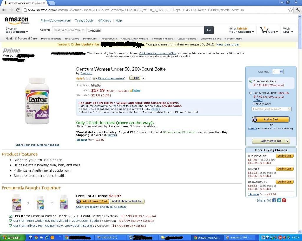 Como exemplo temos a imagem abaixo , eu entrei no site do Amazon em www.amazon.com e em search busquei a vitamina centrum para o nosso exemplo