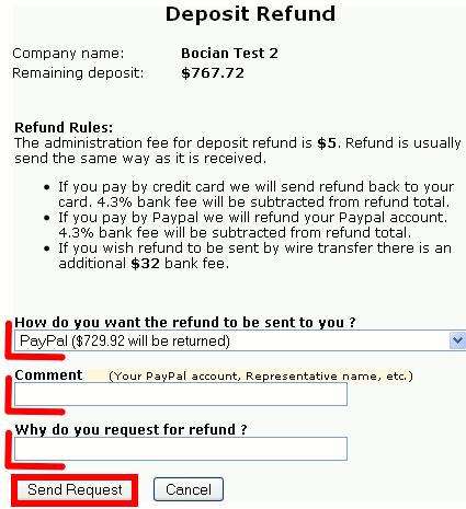 Algumas vezes você poderá adicionar fundos no Shipito e depois decidir que não vai mais fazer uso destes recursos no curto prazo, nestes casos pode ser interessante fazer um pedido de reembolso dos valores para sua conta no Paypal , é isto que este tutorial vai mostrar.1. Login em sua contaPrimeiramente, faça o login em sua conta Shipito www.shipito.com/account 2. Envie todos os pacotesVocê deve enviar todos os seus pacotes antes (ou descartados , se você não deseja enviá-los mais ). Não é possível realizar o reembolso com pacotes em sua mailbox. 3. Clique no botão “Refund” (Reembolso)Na sua conta na página principal , você pode ver seu plano atual e informações a respeito de sua conta e o valor do depósito restante .Ao lado direito do depósito restante existe um link refund(reembolso),clique nele . 4. Preencha o formulario do reembolsoEscolha como deseja que o reembolso seja feito
