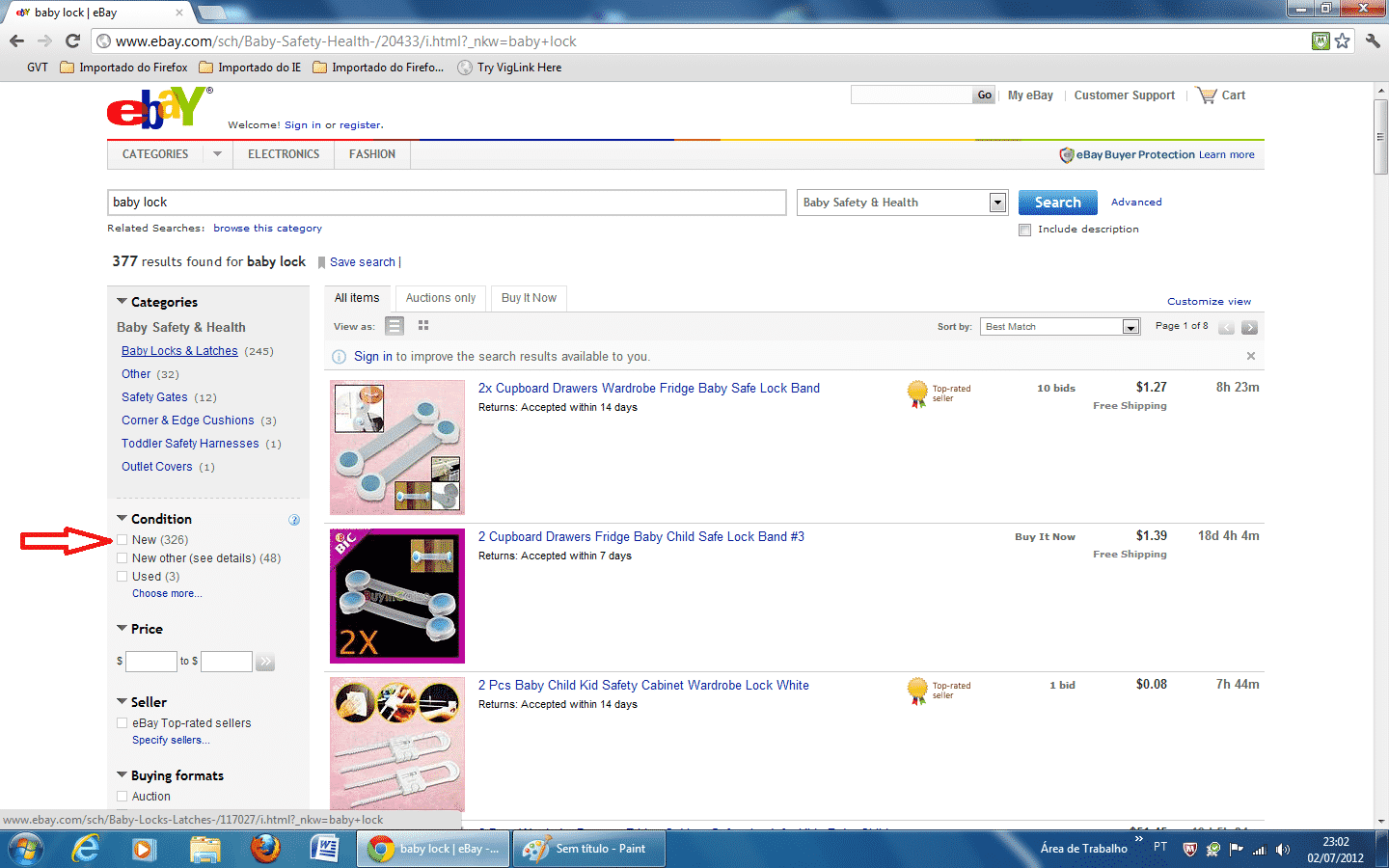 É muito importante que você marque a opção New na barra da esquerda pois desta forma você seleciona apenas itens novos e impede que itens usados sejam apresentados .