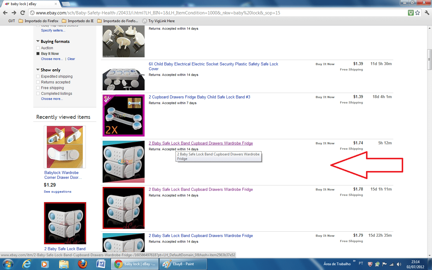 Ao lado de search(onde a seta vermelha aponta ) digite a mercadoria que está procurando , lembre o Ebay é um site americano então digite a mercadoria que está procurando em inglês .